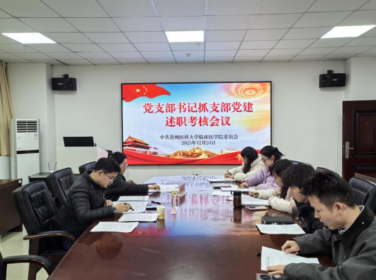 12月24日,贵州医科大学临床医学院党委召开2025年度党支部书记抓基层党建述职评议会议。校党委组织部副部长蔡炼、组织科科长龙宛苡列席督导,临床医学院党委副书记桂晓玲、副处级组织员马燕萍及所辖各党支部书记参会。