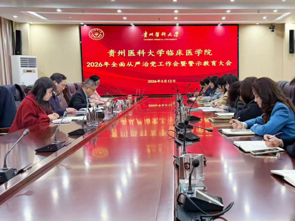 3月12日,学院党委在北京路校区行政楼7楼连廊会议室召开2026年全面从严治党工作会暨警示教育大会。院党委领导班子成员、各职能科室成员、党支部书记及辅导员参加会议。会议由校党委常委、附属医院党委书记、临床医学院党委书记李海洋主持。